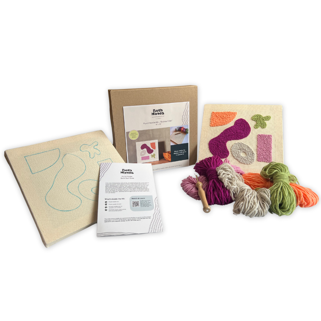 Both Hands kits come with everything you need to make unique, textured wall art in an evening or weekend—no prior punch needle experience needed. This beginner-friendly design comes with quality materials and easy to follow instructions. You'll punch the design directly onto a stretched monk's cloth canvas, so when you're done, it's already ready to display.