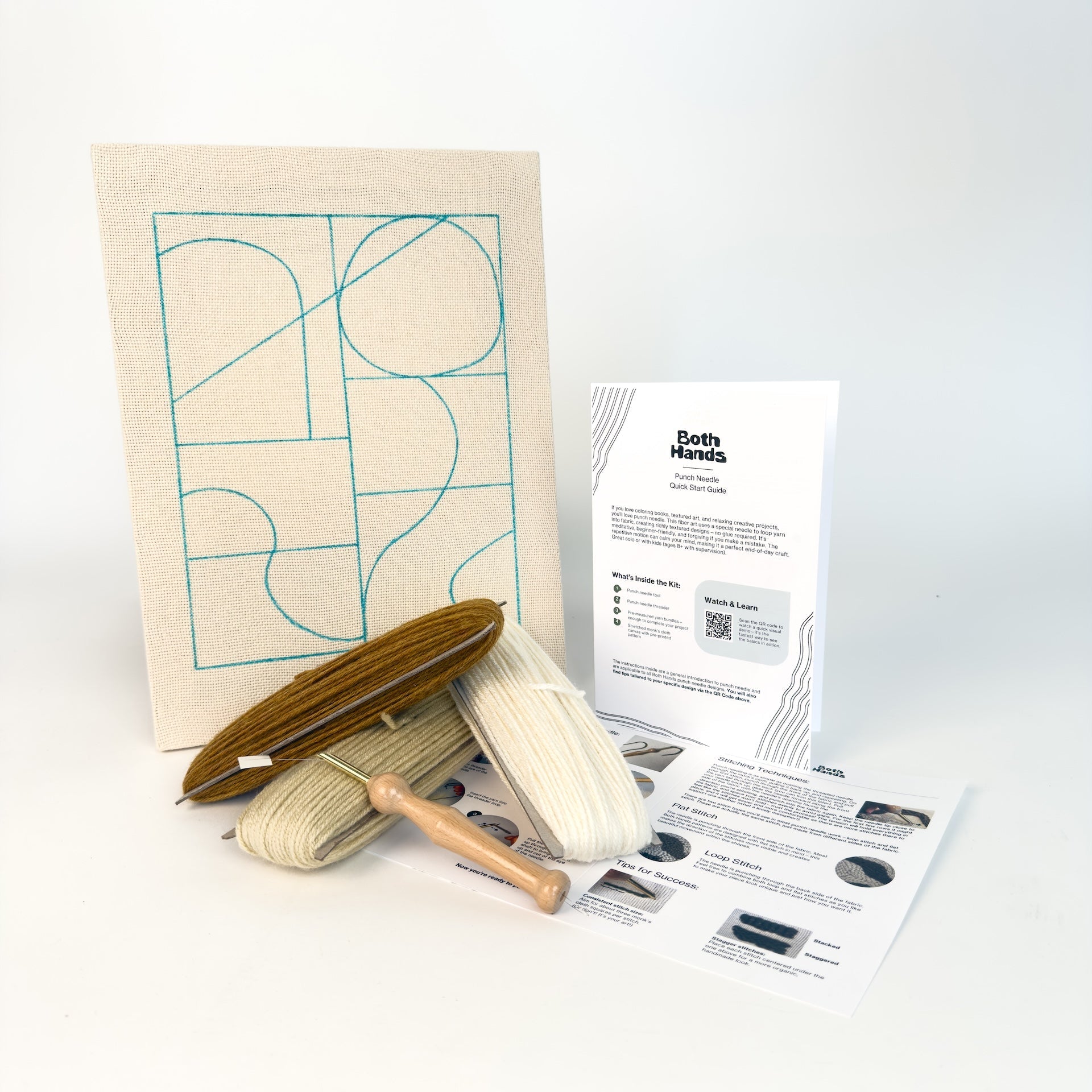 Both Hands kits come with everything you need to make unique, textured wall art in an evening or weekend—no prior punch needle experience needed. This beginner-friendly design comes with quality materials and easy to follow instructions. You'll punch the design directly onto a stretched monk's cloth canvas, so when you're done, it's ready to display.