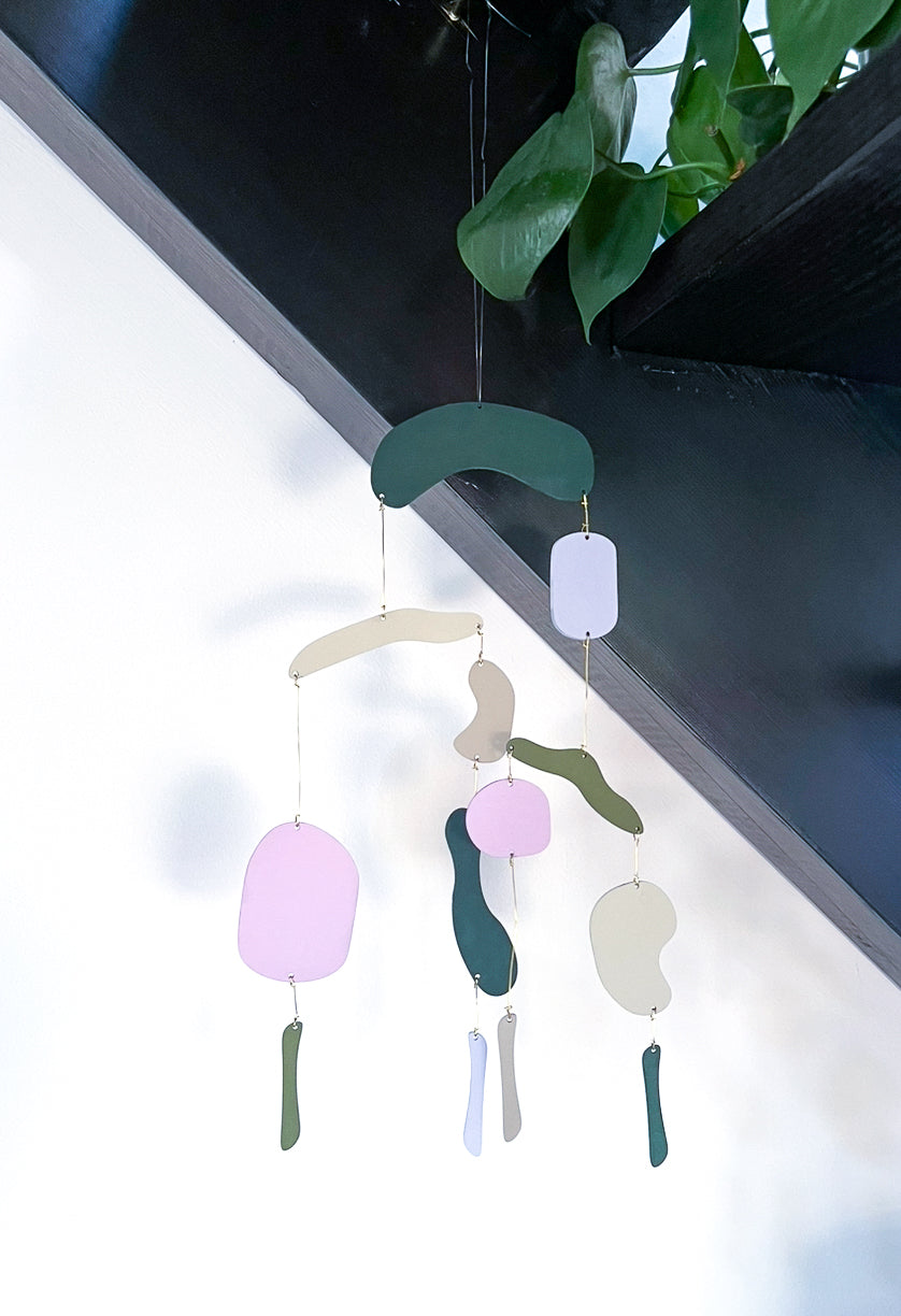 A sculptural DIY mobile with organic, layered shapes that shift gently with the air. Painting and assembling Orbit is a calming, hands-on process — and the finished piece brings a touch of motion and color to any modern space.